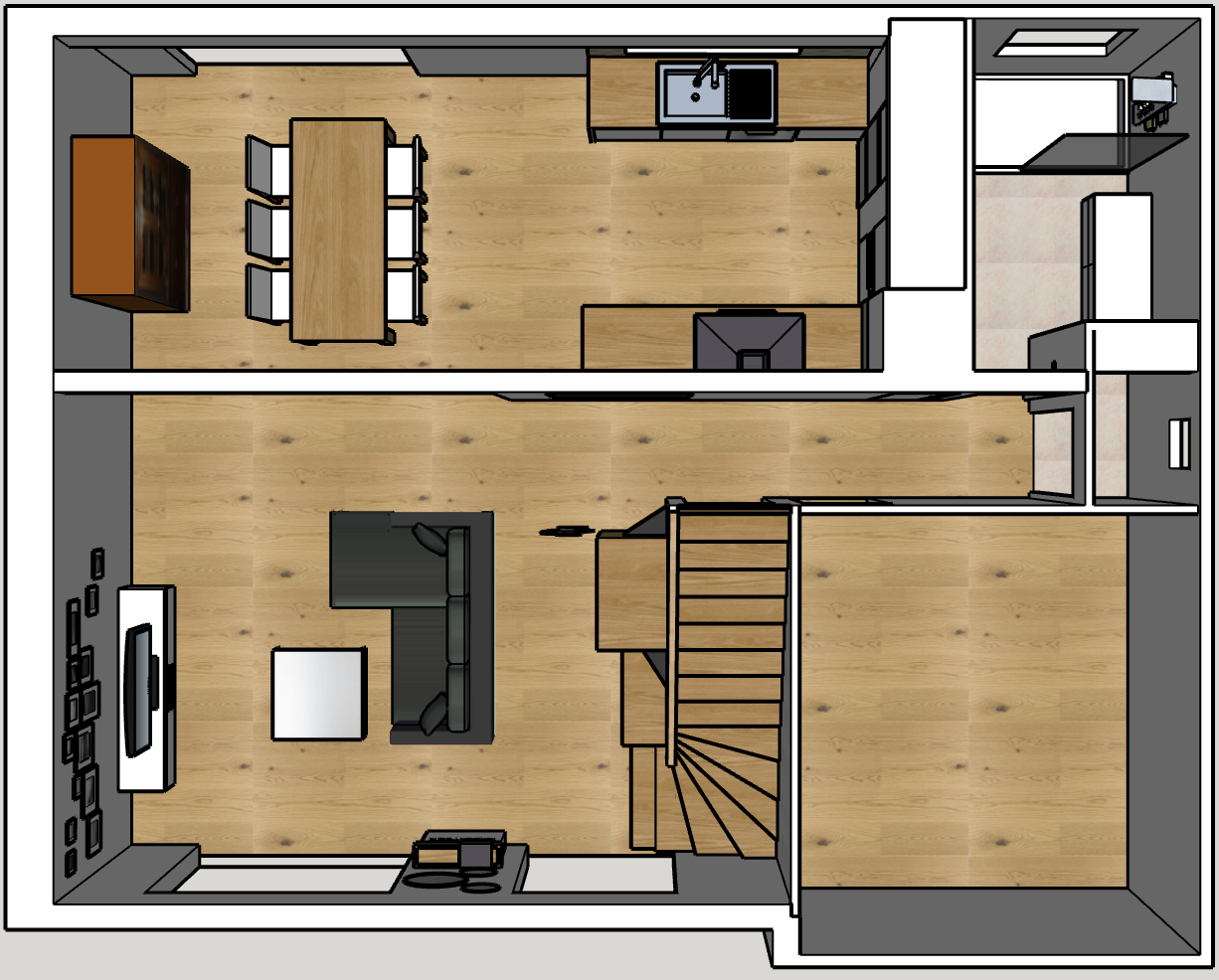 Nous nous sommes concentrés sur le RDC de la maison, et avons juste compléter l’isolation de la toiture et refait la façade.